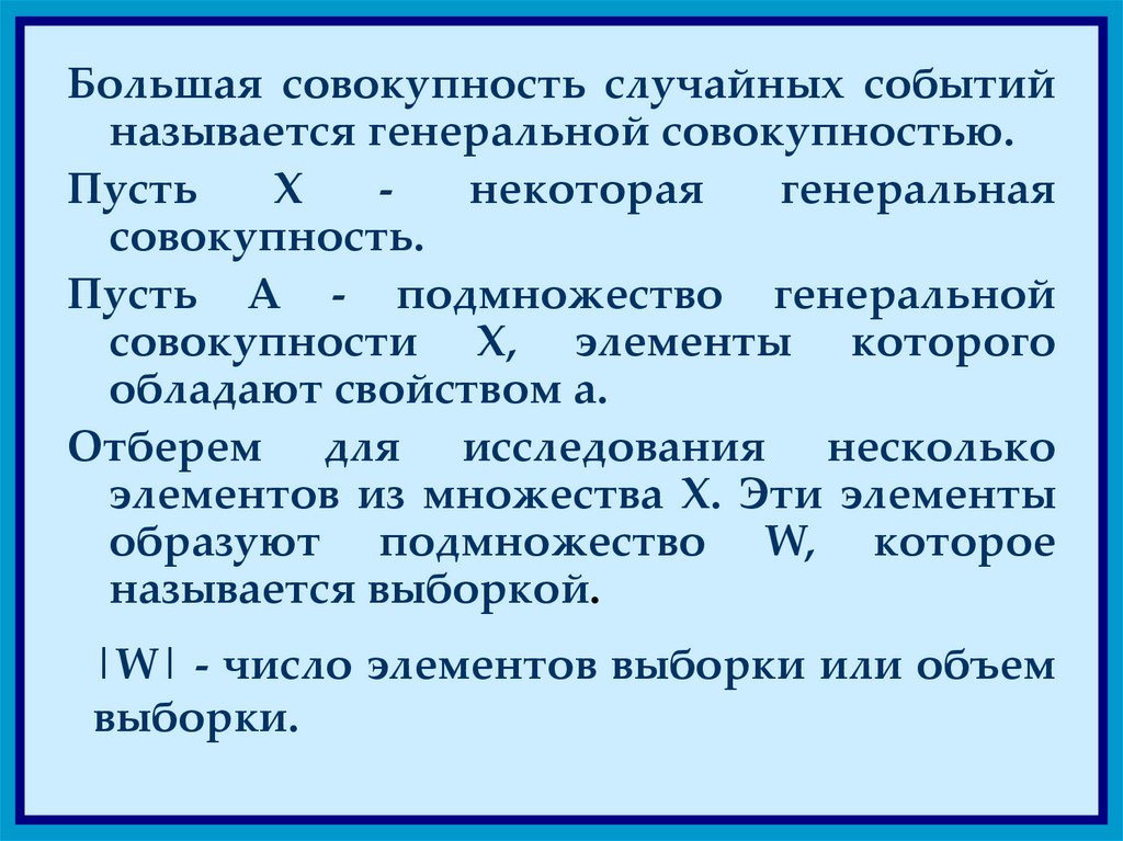 Большая совокупность случайных событийназывается генеральной совокупностью.