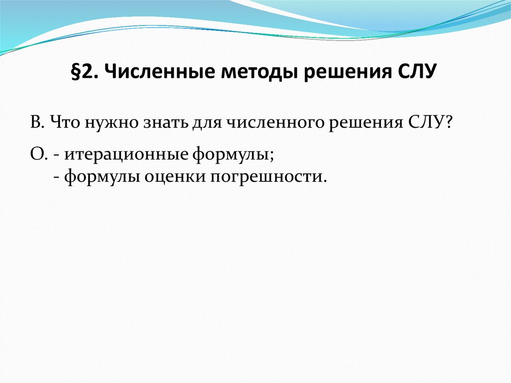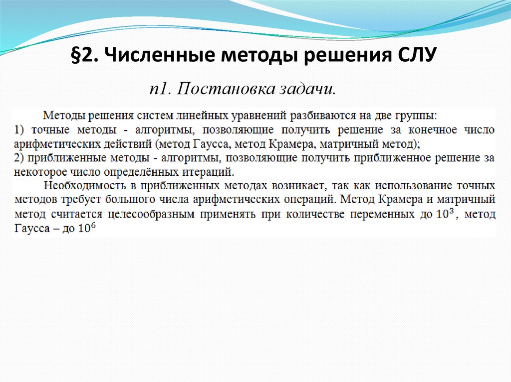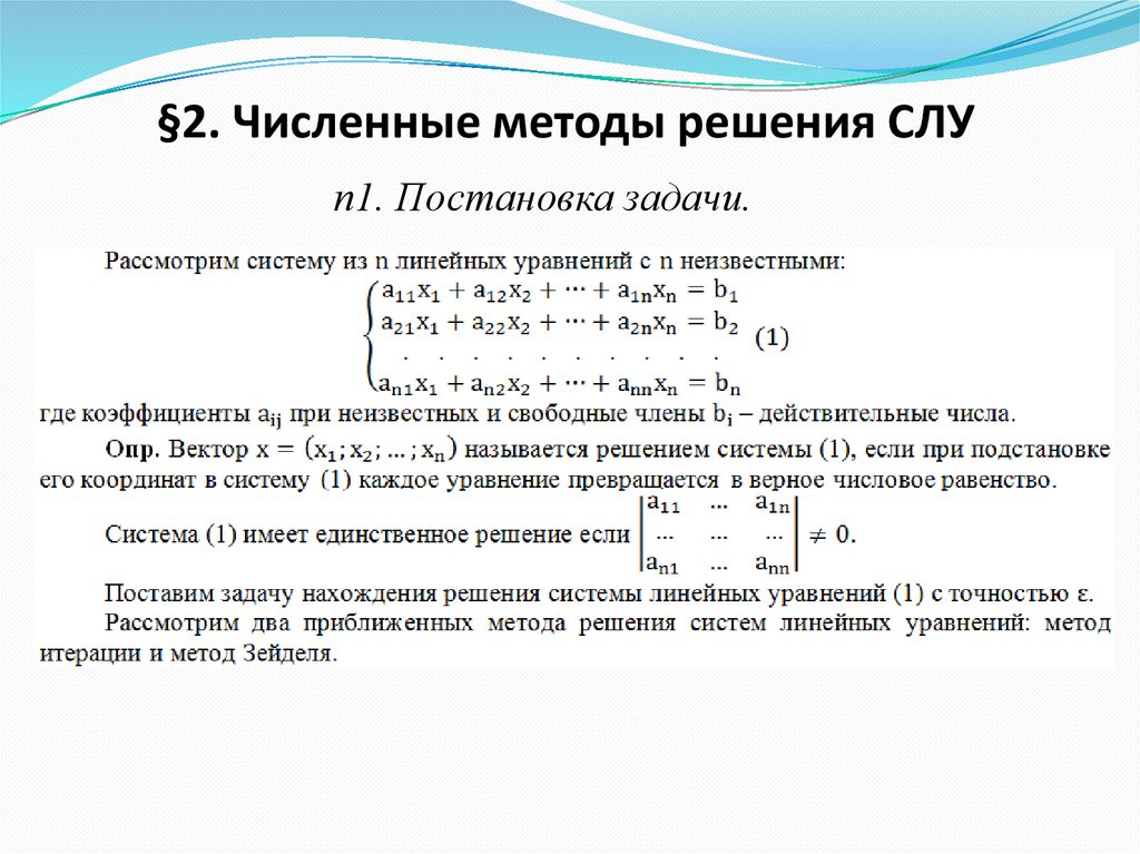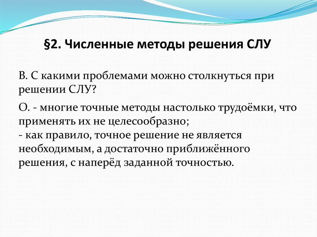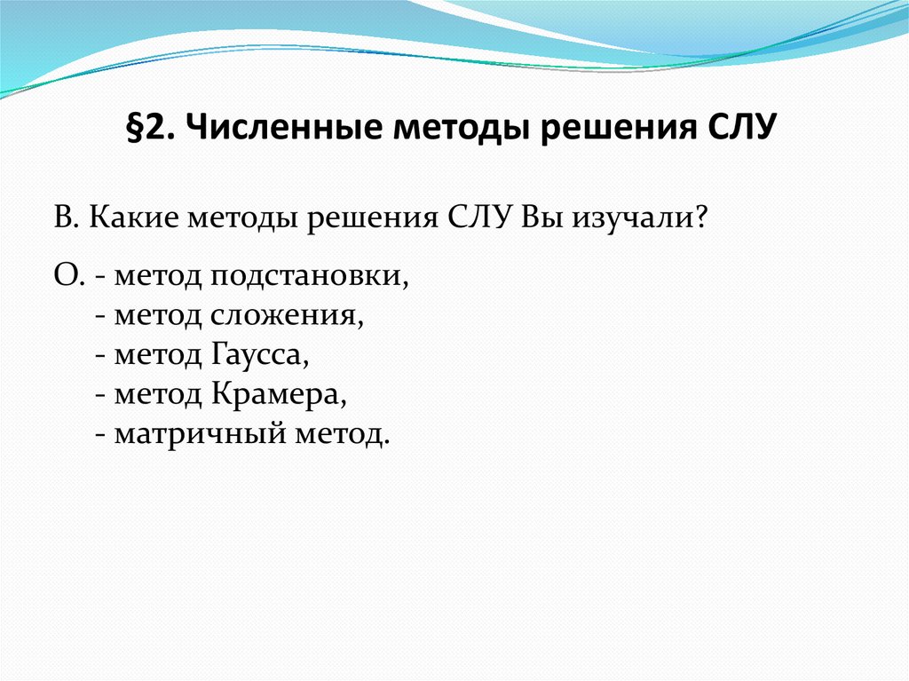 §2. Численные методы решения СЛУВ. Какие методы решения СЛУ Вы изучали?