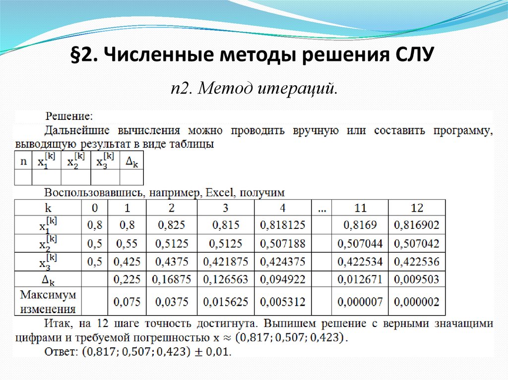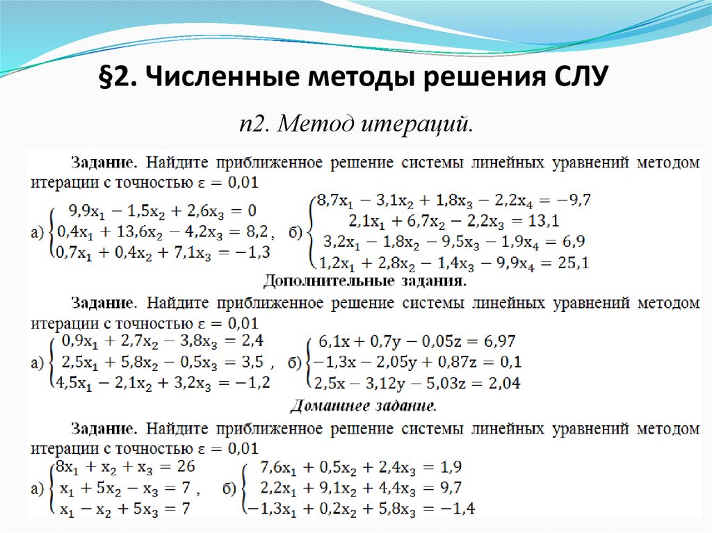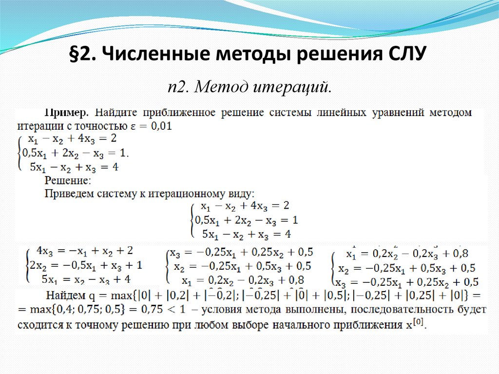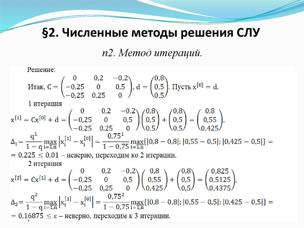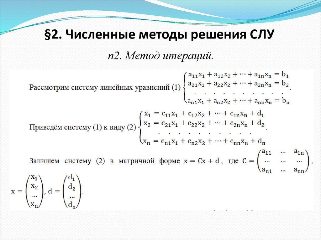 §2. Численные методы решения СЛУп2. Метод итераций.