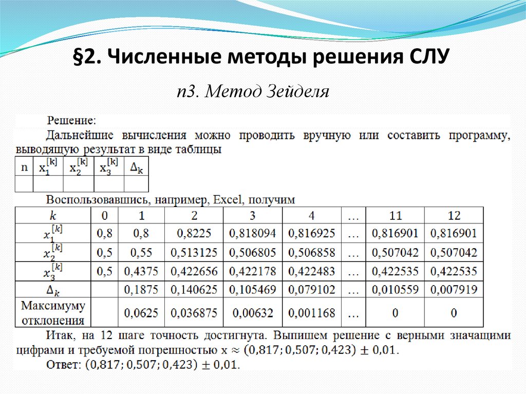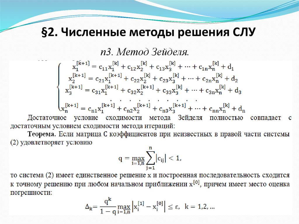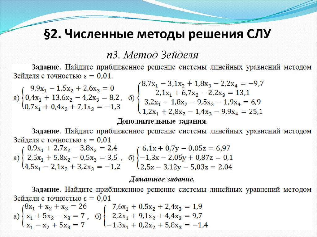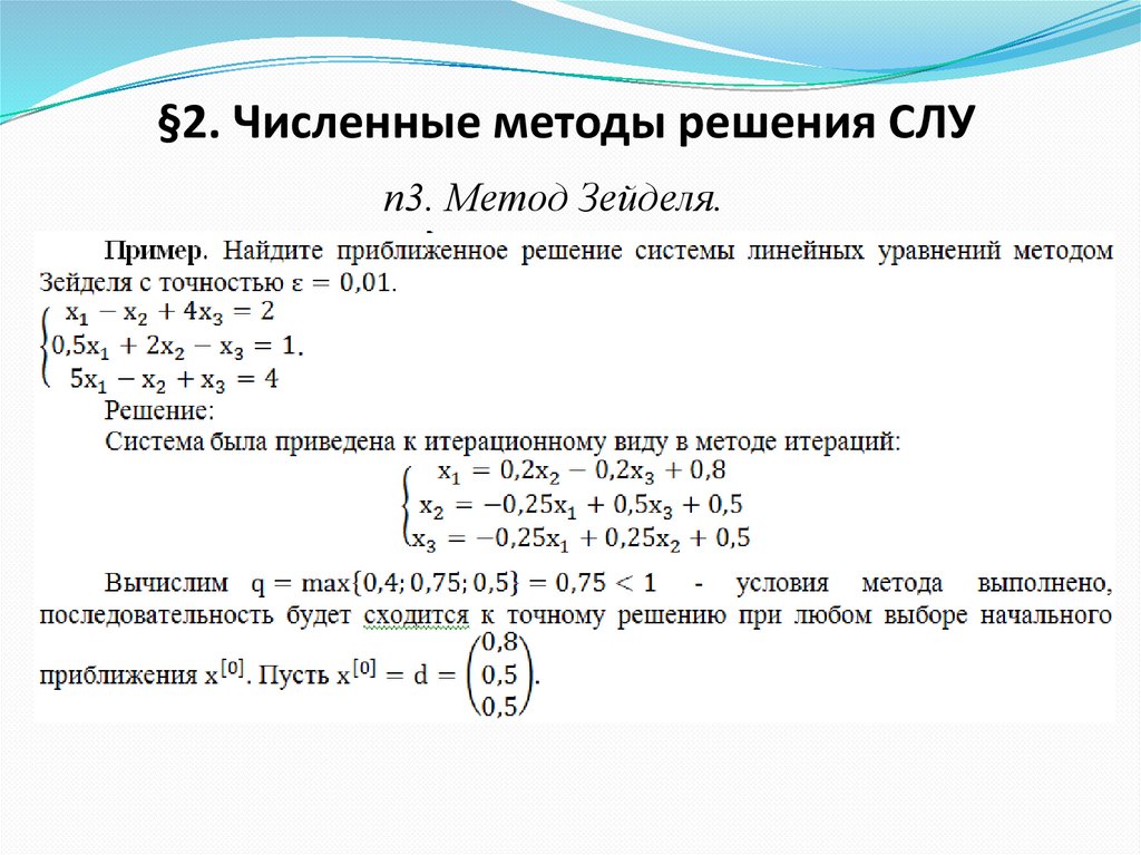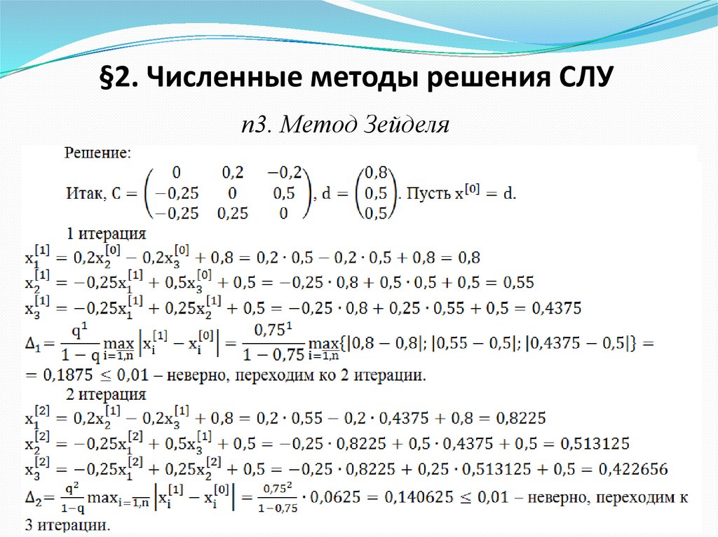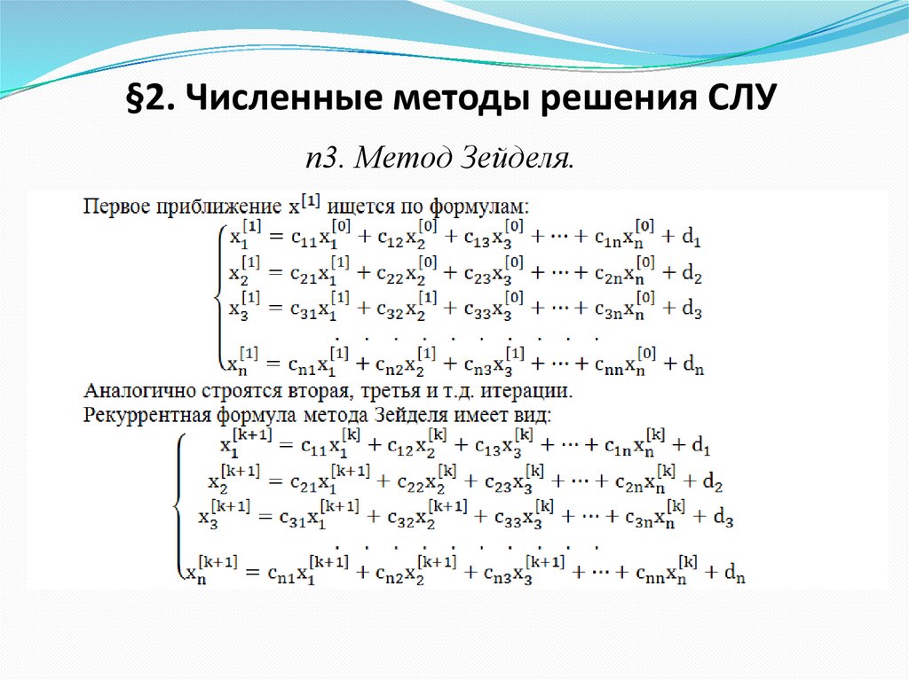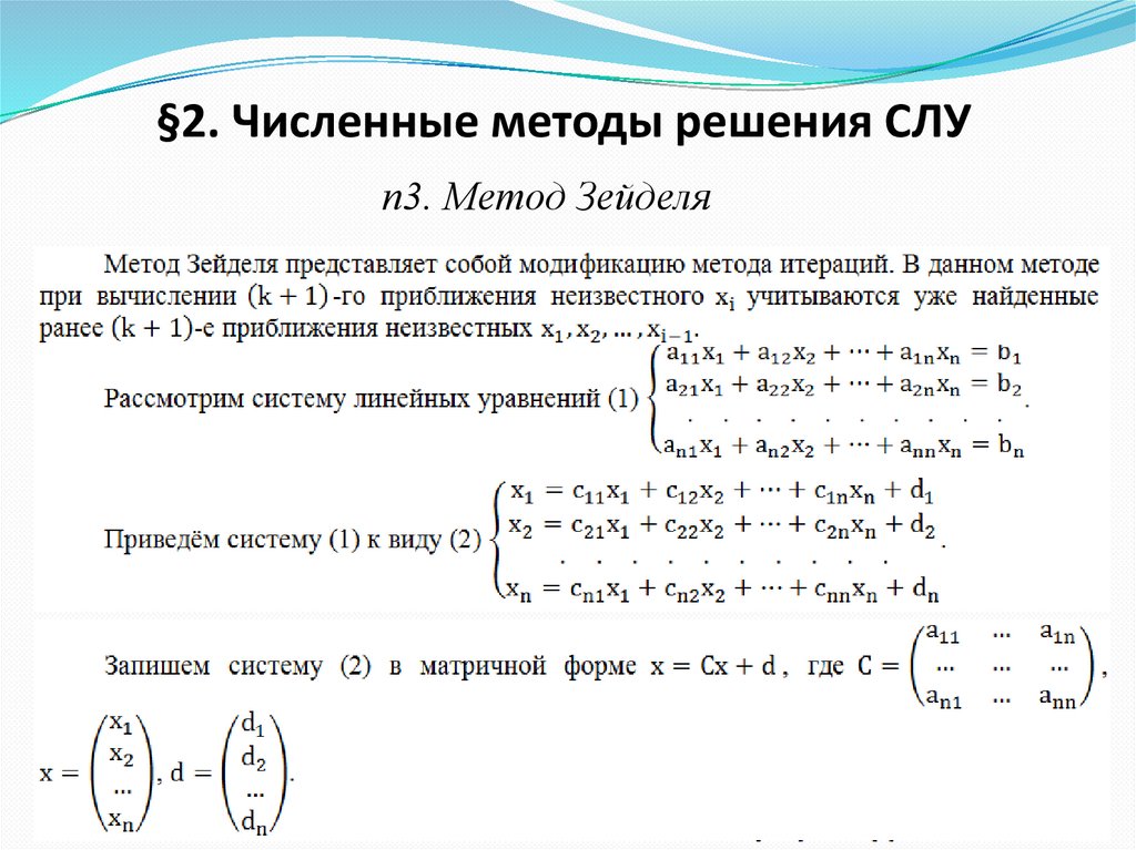 §2. Численные методы решения СЛУп3. Метод Зейделя.