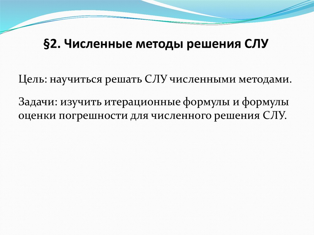 §2. Численные методы решения СЛУЦель: научиться решать СЛУ численными методами.