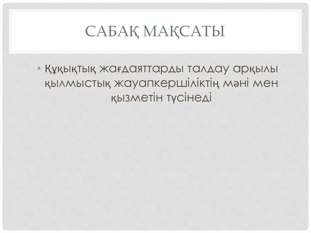 САБАҚ МАҚСАТЫ• Құқықтық жағдаяттарды талдау арқылы