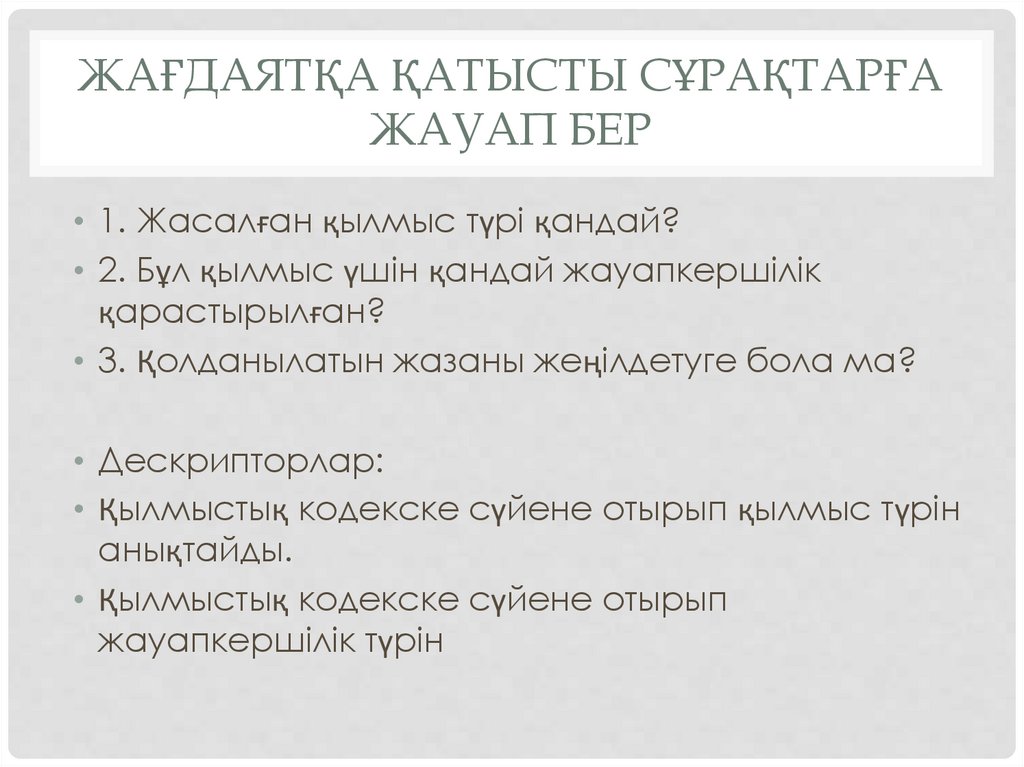 • Қылмыстық кодекске сүйене отырып