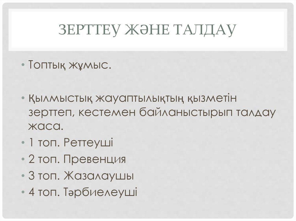ЗЕРТТЕУ ЖӘНЕ ТАЛДАУ• Топтық жұмыс.