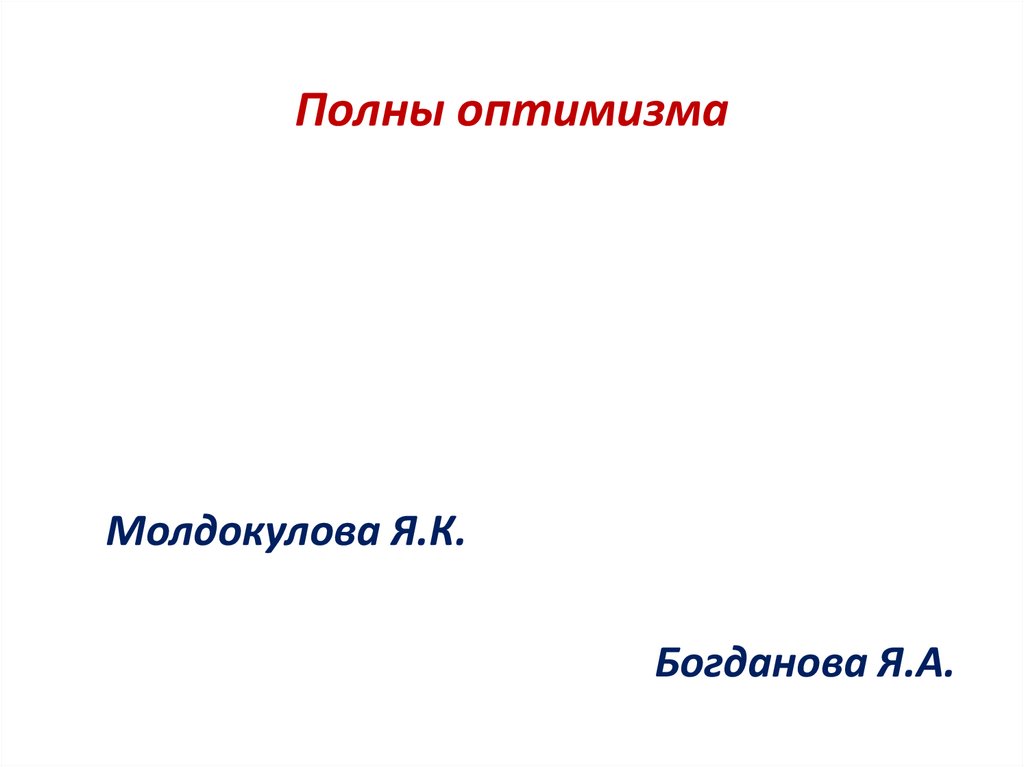 Полны оптимизмаМолдокулова Я.К.