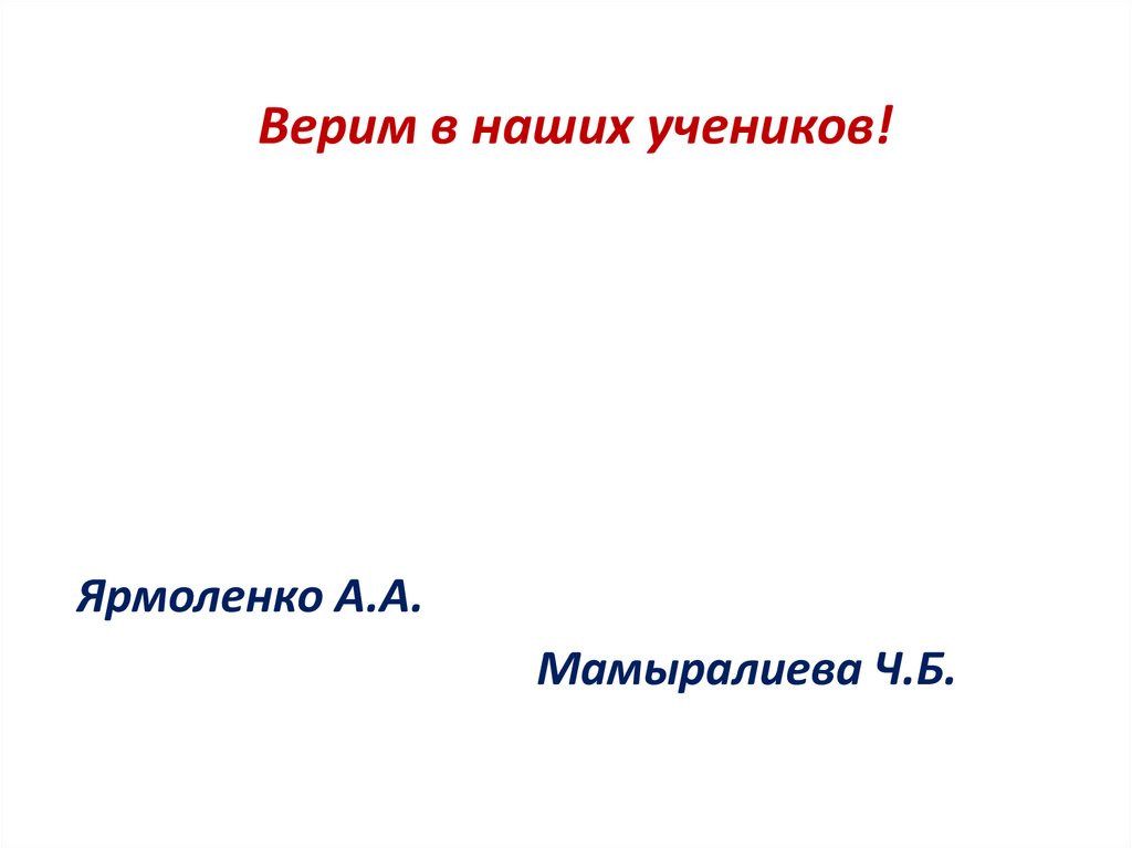 Верим в наших учеников!Ярмоленко А.А.
