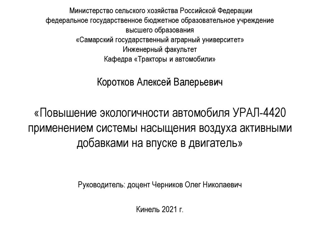 «Повышение экологичности автомобиля УРАЛ-4420