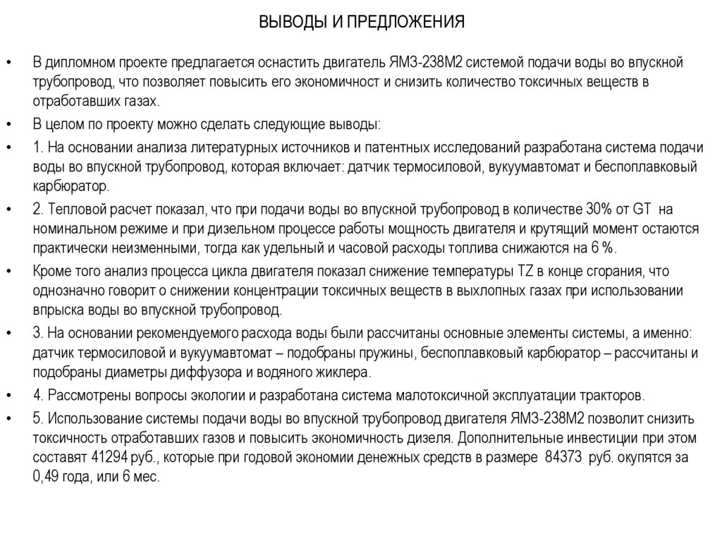 ВЫВОДЫ И ПРЕДЛОЖЕНИЯВ дипломном проекте предлагается оснастить двигатель ЯМЗ-238М2 системой подачи воды во впускной