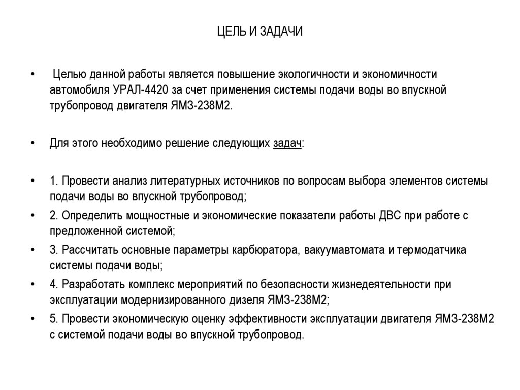 ЦЕЛЬ И ЗАДАЧИЦелью данной работы является повышение экологичности и экономичности