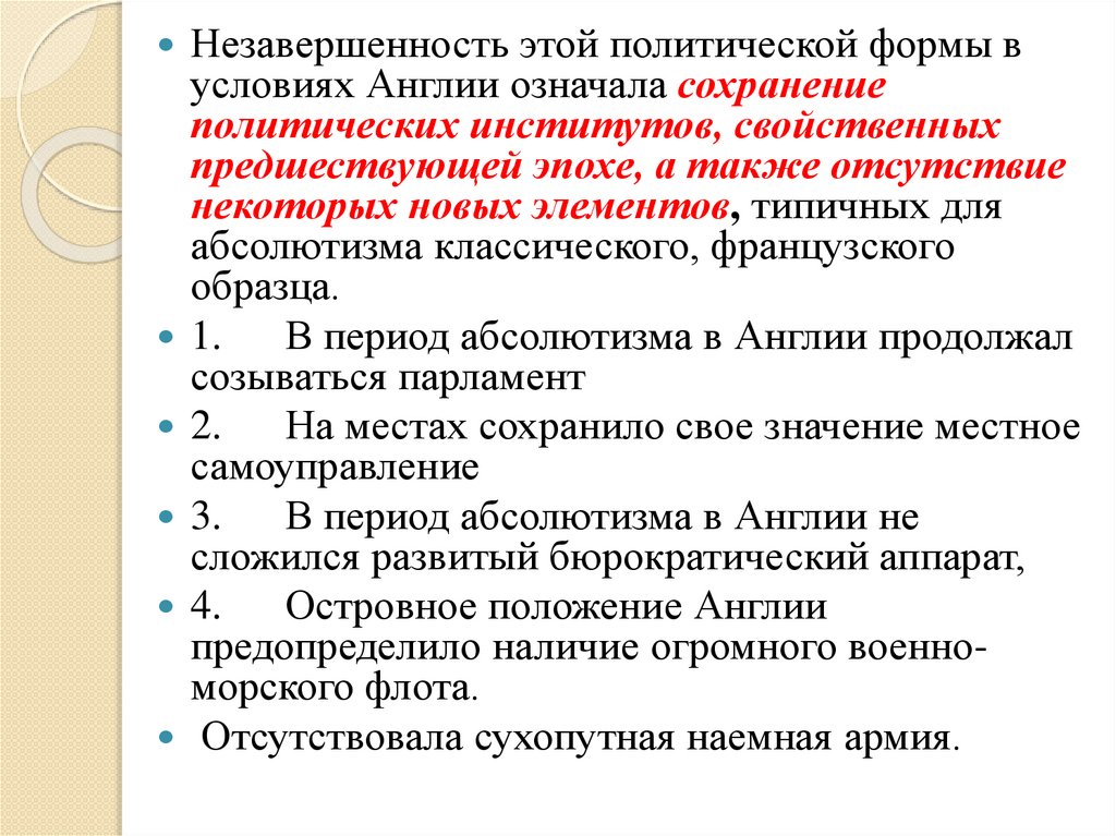 Вместе с тем английский абсолютизм