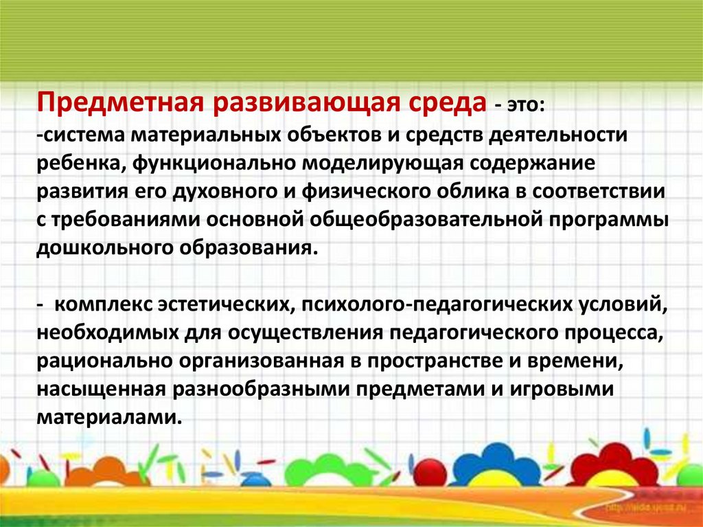 Предметная развивающая среда - это:-система материальных объектов и средств деятельности