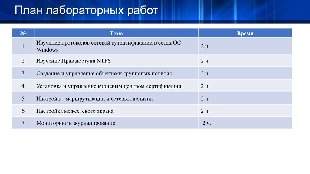 План лабораторных работ№