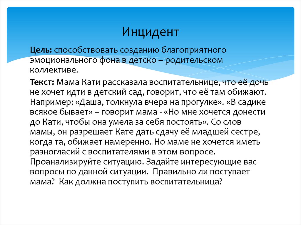Например: «Даша, толкнула вчера на прогулке». «В садике