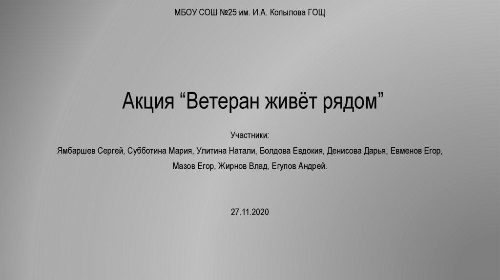 МБОУ СОШ №25 им. И.А. Копылова ГОЩАкция “Ветеран живёт рядом”