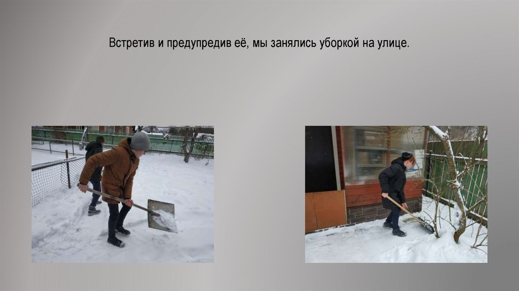 Встретив и предупредив её, мы занялись уборкой на улице.5.