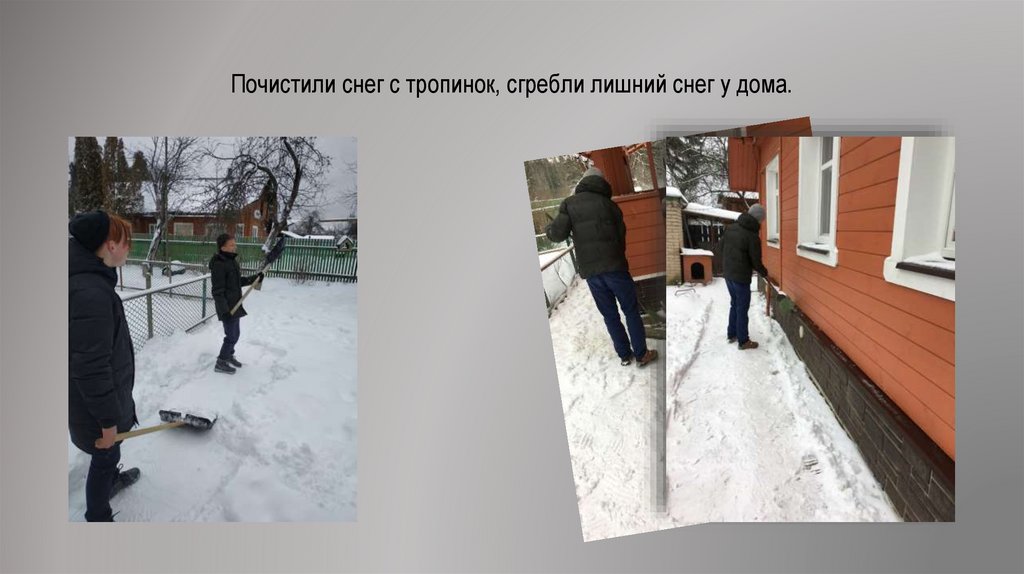 Почистили снег с тропинок, сгребли лишний снег у дома.6.