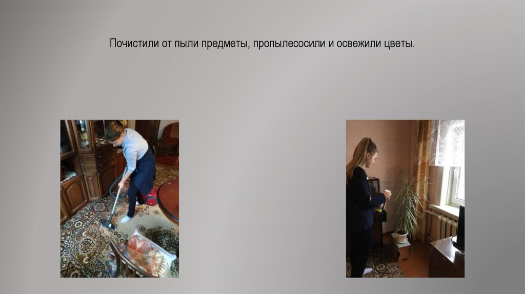 Почистили от пыли предметы, пропылесосили и освежили цветы.8.