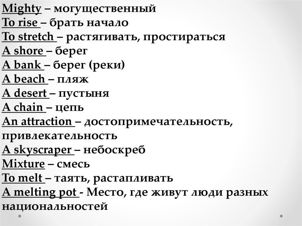 Mighty – могущественныйTo rise – брать начало