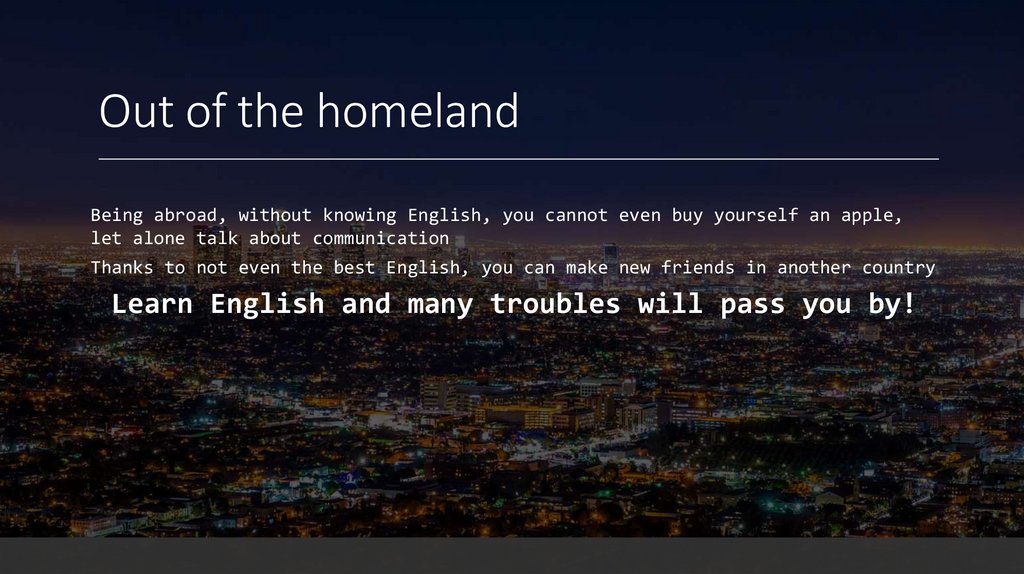 Out of the homelandBeing abroad, without knowing English, you cannot even buy yourself an apple,