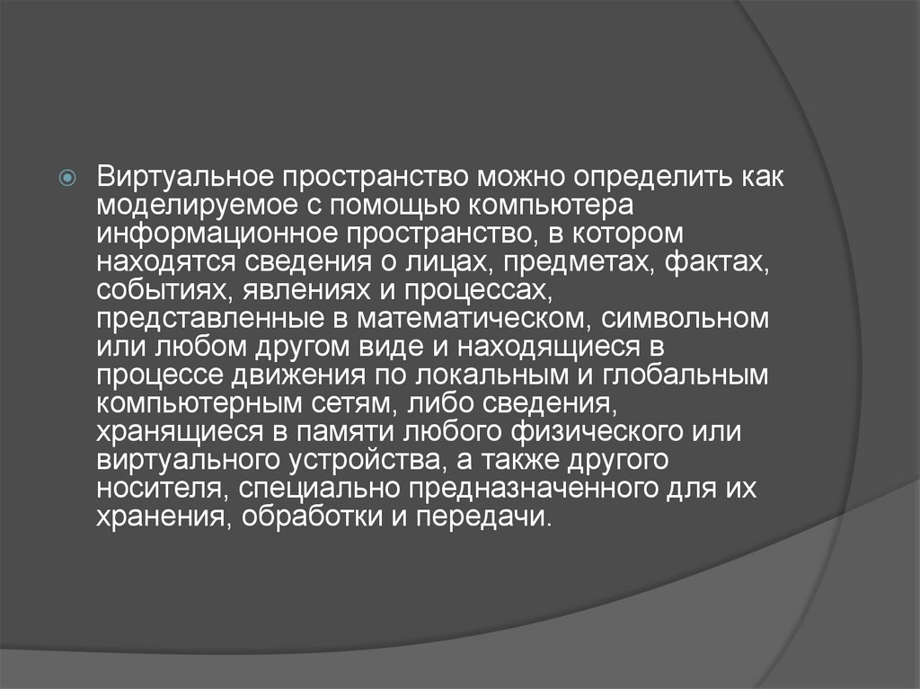 Виртуальное пространство можно определить какмоделируемое с помощью компьютера