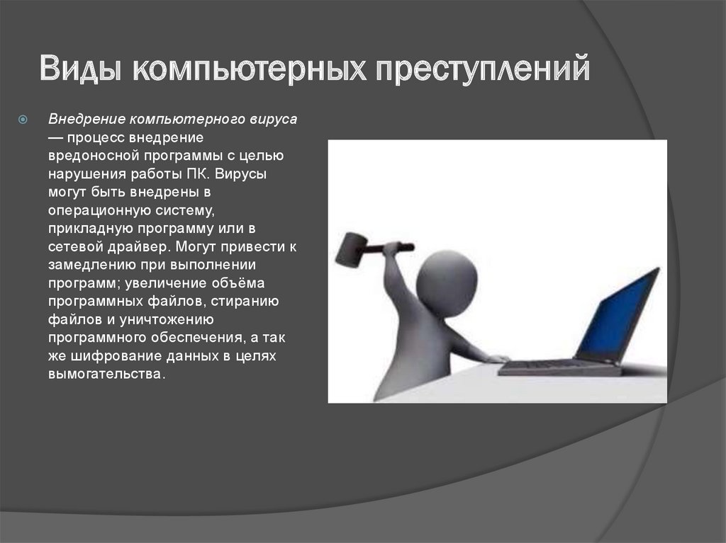 Виды компьютерных преступленийВнедрение компьютерного вируса