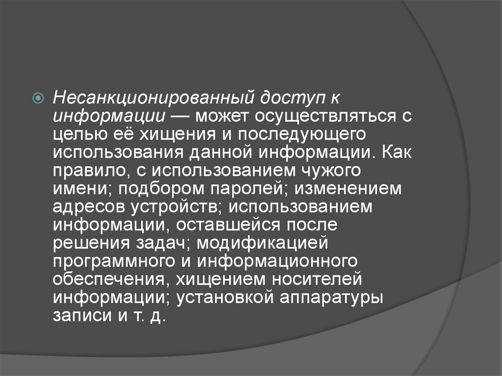 Несанкционированный доступ кинформации — может осуществляться с