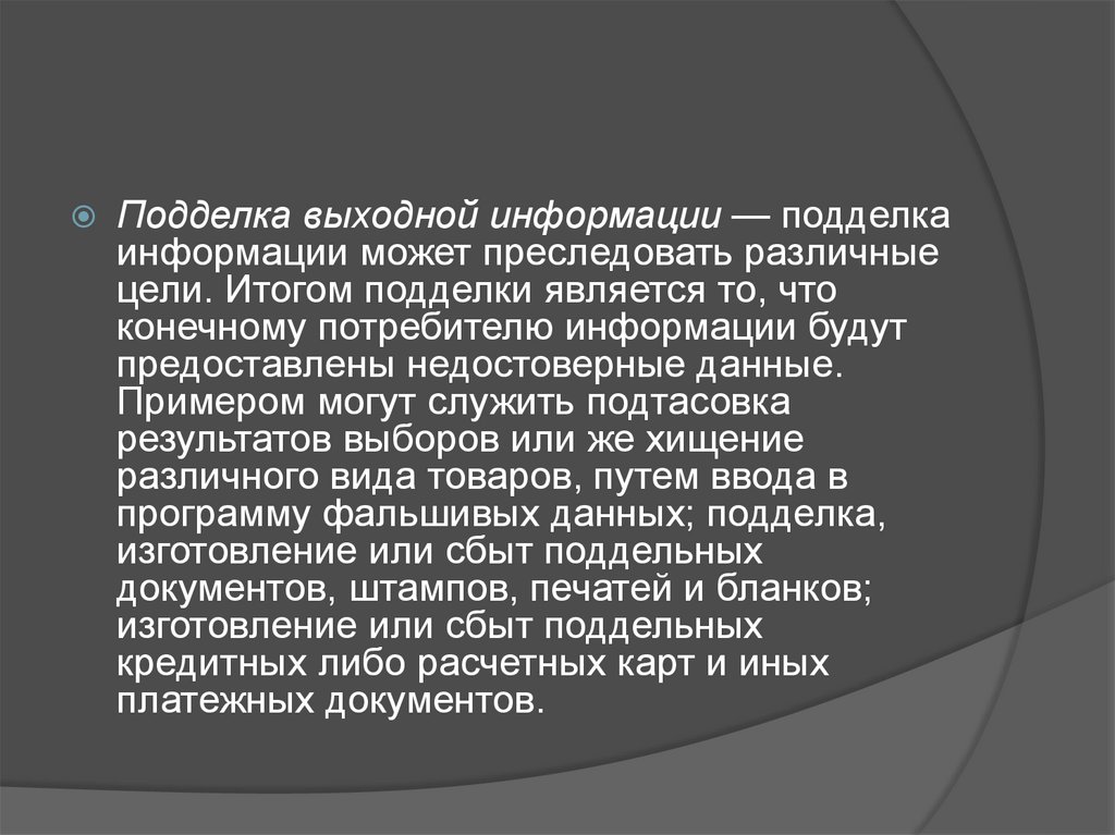 Подделка выходной информации — подделкаинформации может преследовать различные