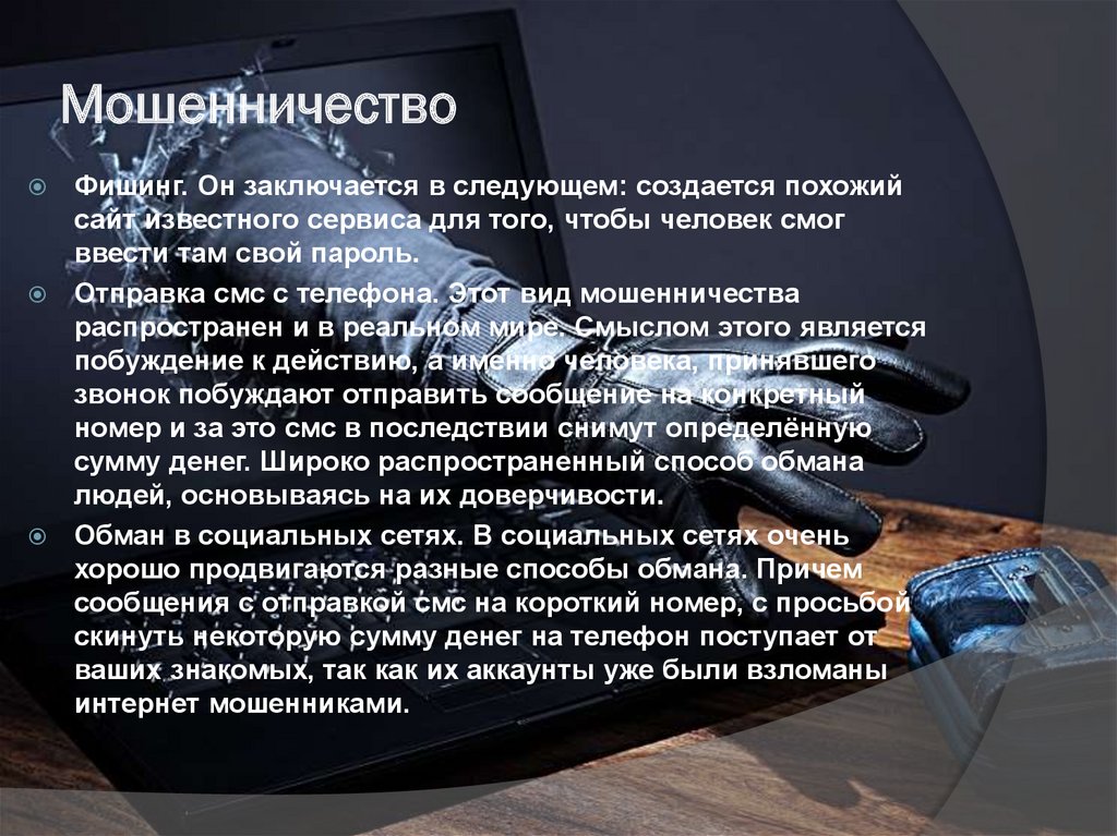 МошенничествоФишинг. Он заключается в следующем: создается похожий