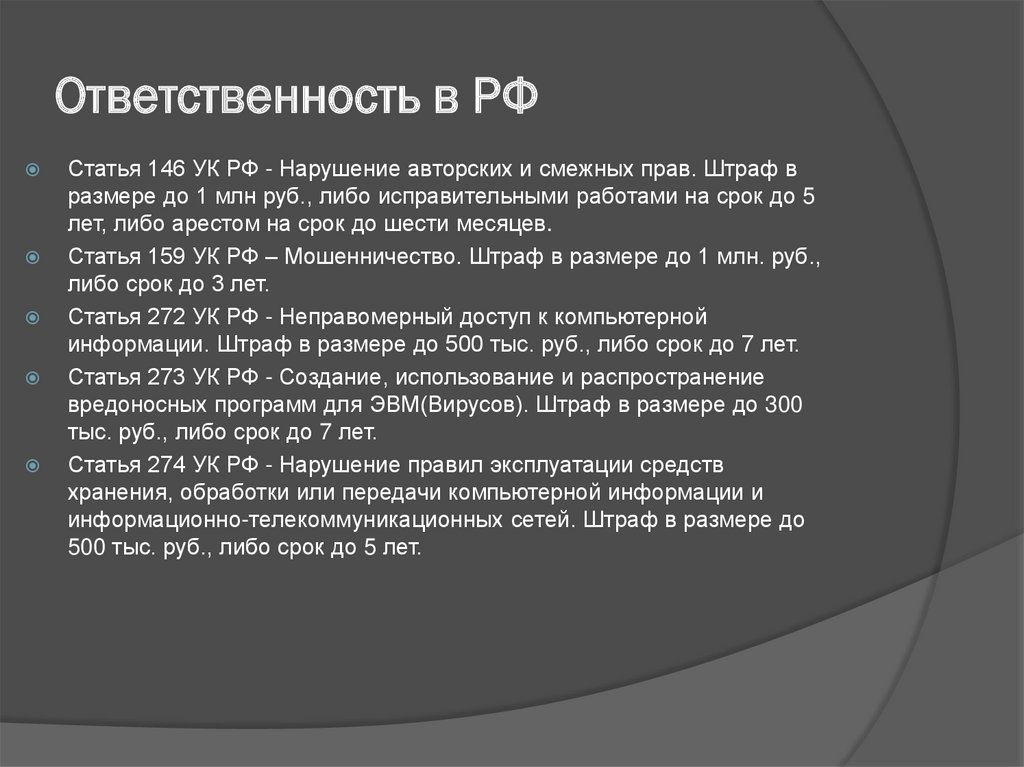 Ответственность в РФСтатья 146 УК РФ - Нарушение авторских и смежных прав. Штраф в