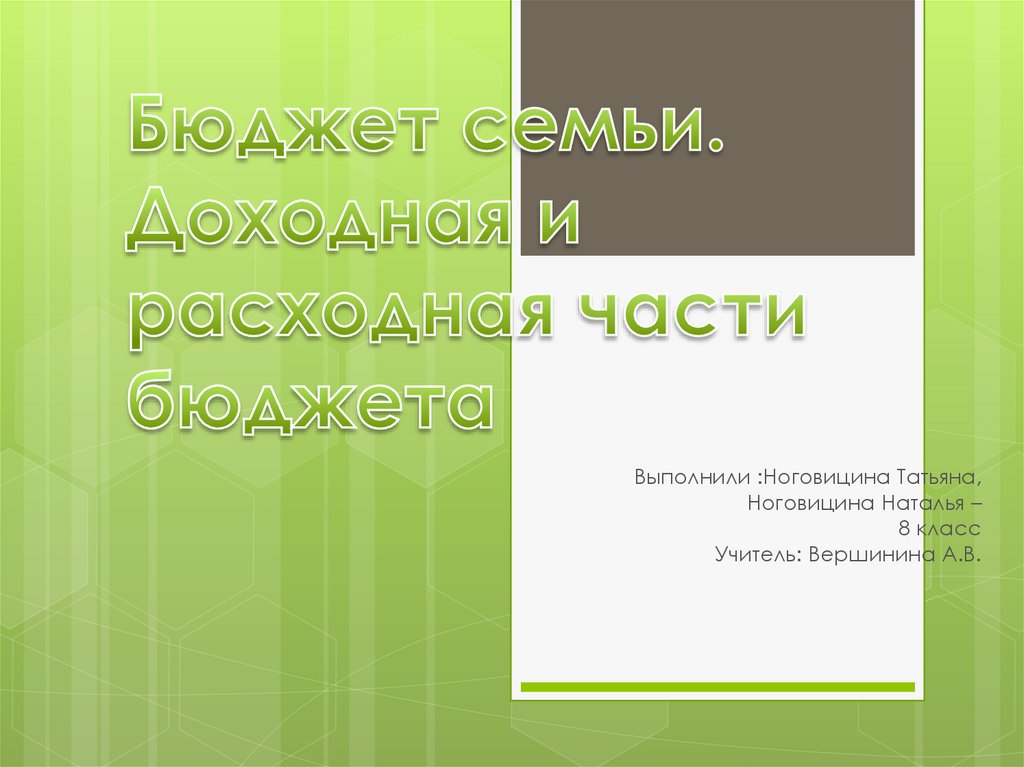 БЮДЖЕТ СЕМЬИСемейный бюджет — это финансовый