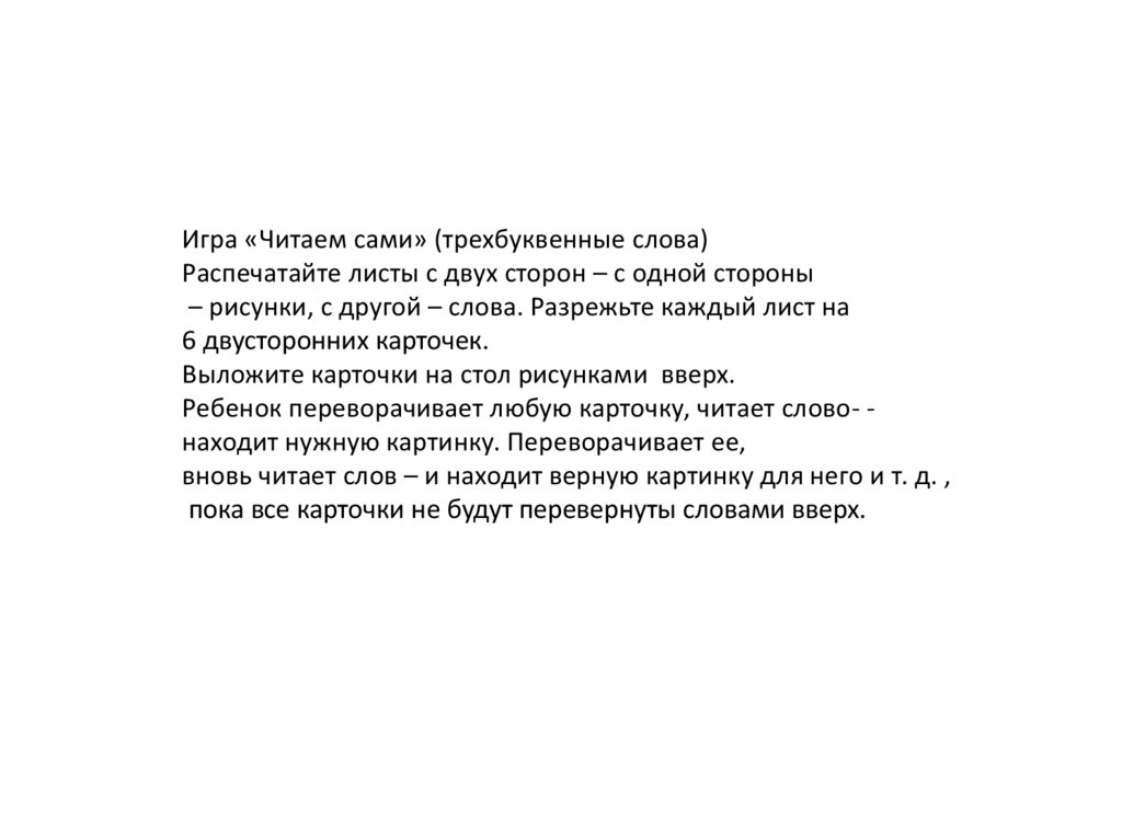Игра «Читаем сами» (трехбуквенные слова)Распечатайте листы с двух сторон – с одной стороны