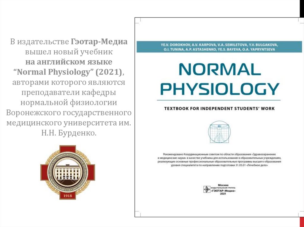 ПРЕСС-РЕЛИЗ УЧЕБНОГО ИЗДАНИЯ“NORMAL PHYSIOLOGY”, 2021