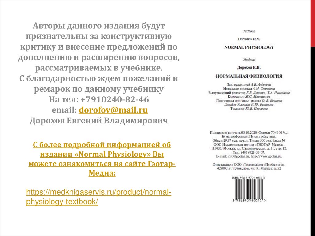 Пресс-релиз учебного издания “Normal physiology”, 2021