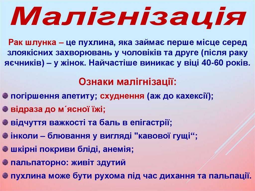 Рак шлунка – це пухлина, яка займає перше місце середзлоякісних захворювань у чоловіків та друге (після раку