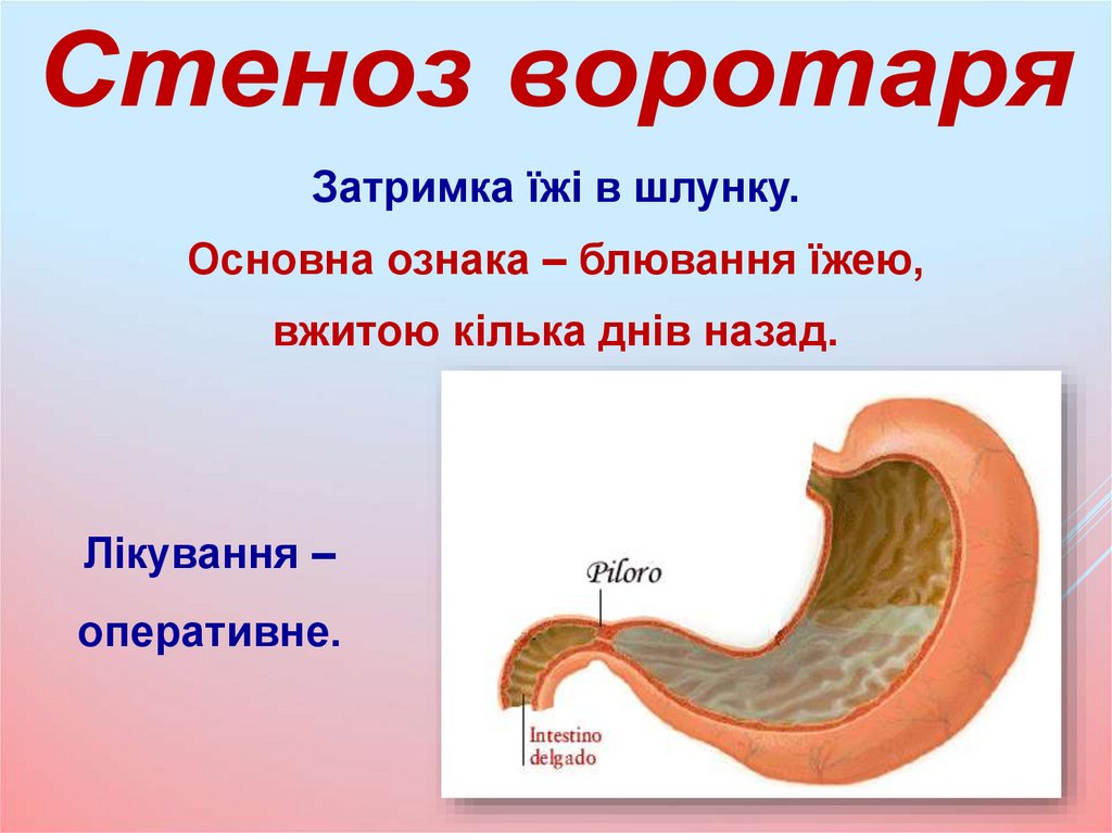 Затримка їжі в шлунку.Основна ознака – блювання їжею,