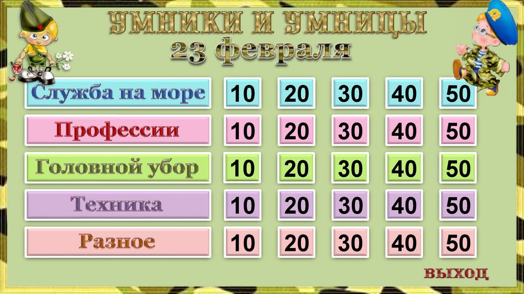 Умники и умницы. Интеллектуальная игра к 23 февраля