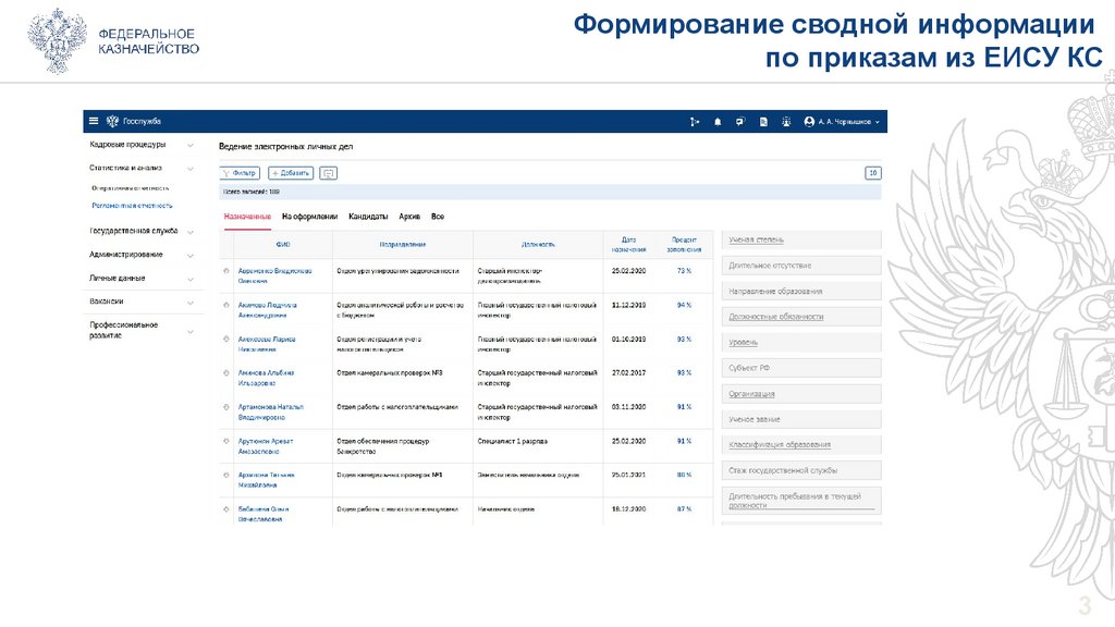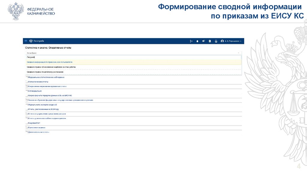 Формирование сводной информациипо приказам из ЕИСУ КС