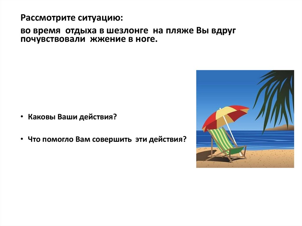 Рассмотрите ситуацию:во время отдыха в шезлонге на пляже Вы вдруг