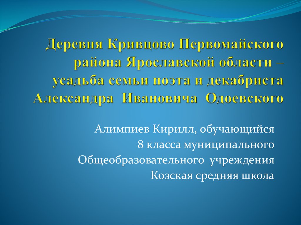 Алимпиев Кирилл, обучающийся8 класса муниципального