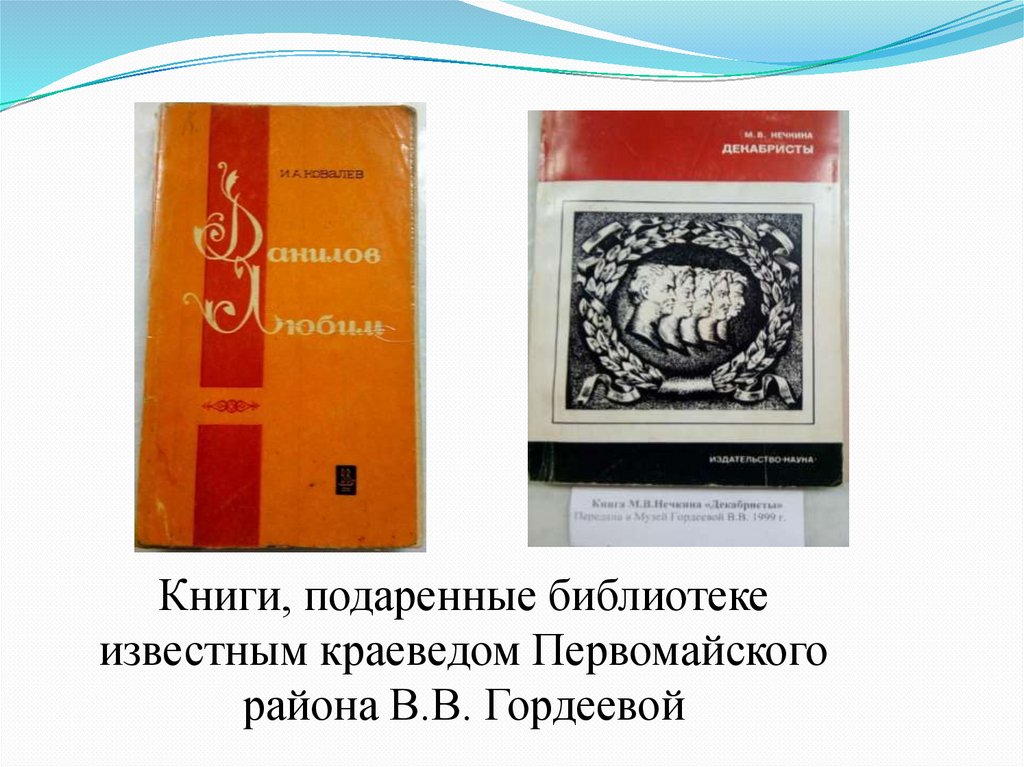 Книги, подаренные библиотекеизвестным краеведом Первомайского