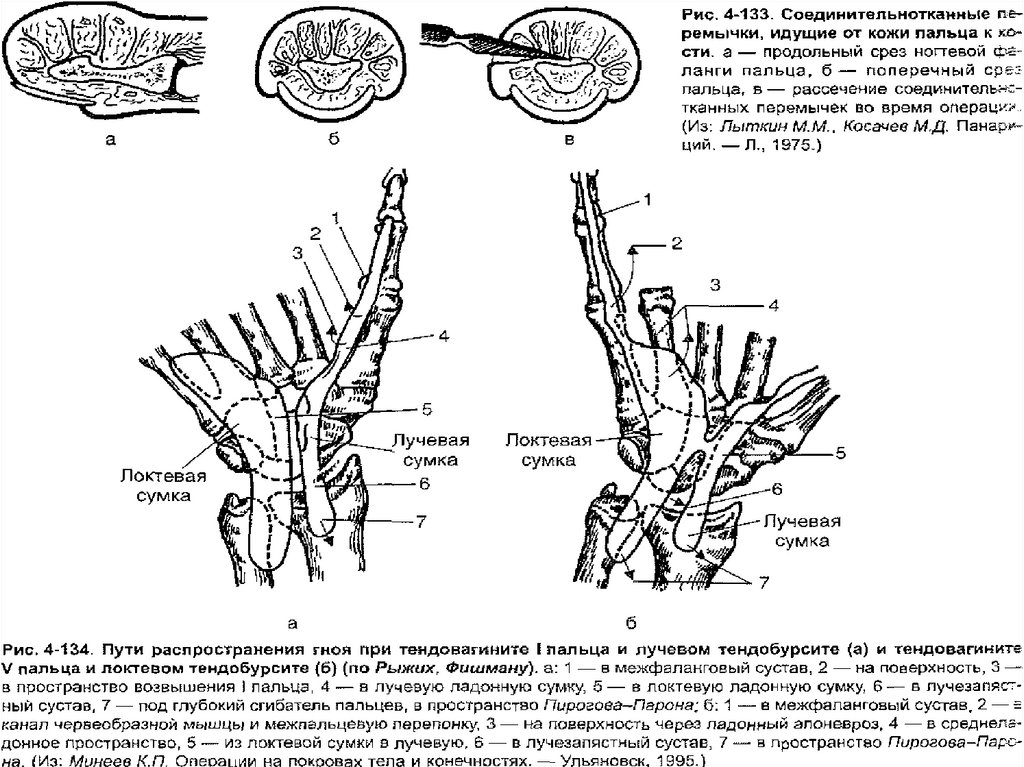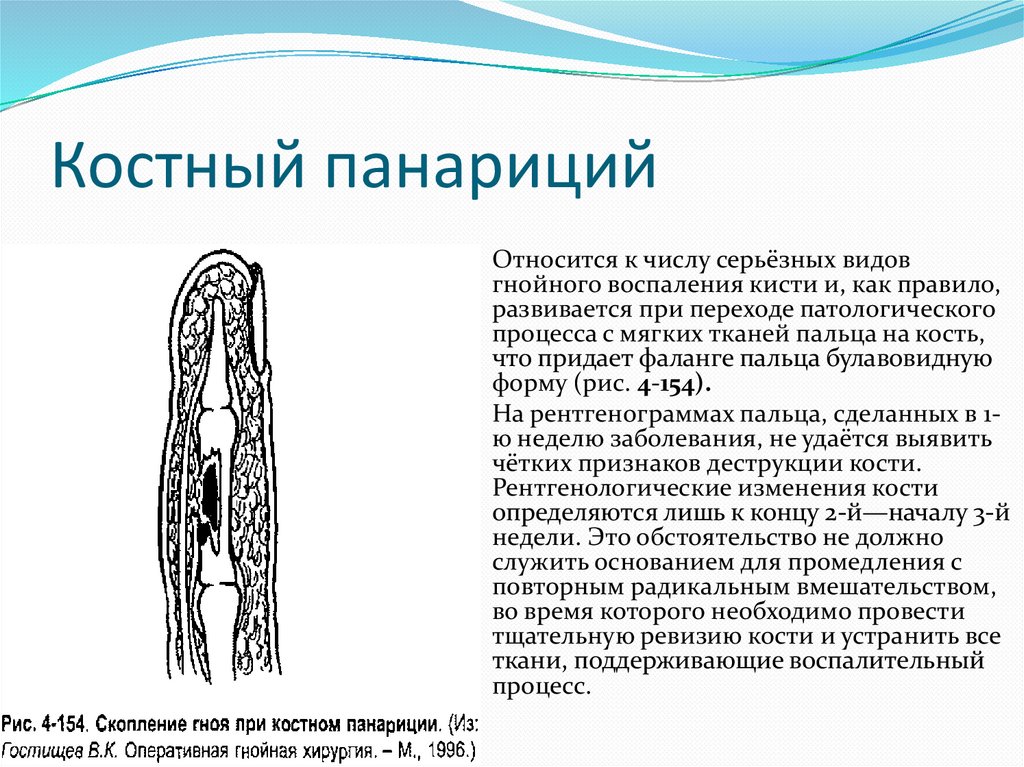 После рассечения кожи с клетчаткой и опорожнения гнойнонекротической полости проводят тщательную ревизию фаланги. В