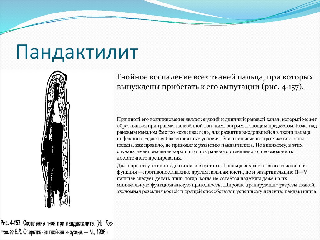 ПандактилитГнойное воспаление всех тканей пальца, при которых