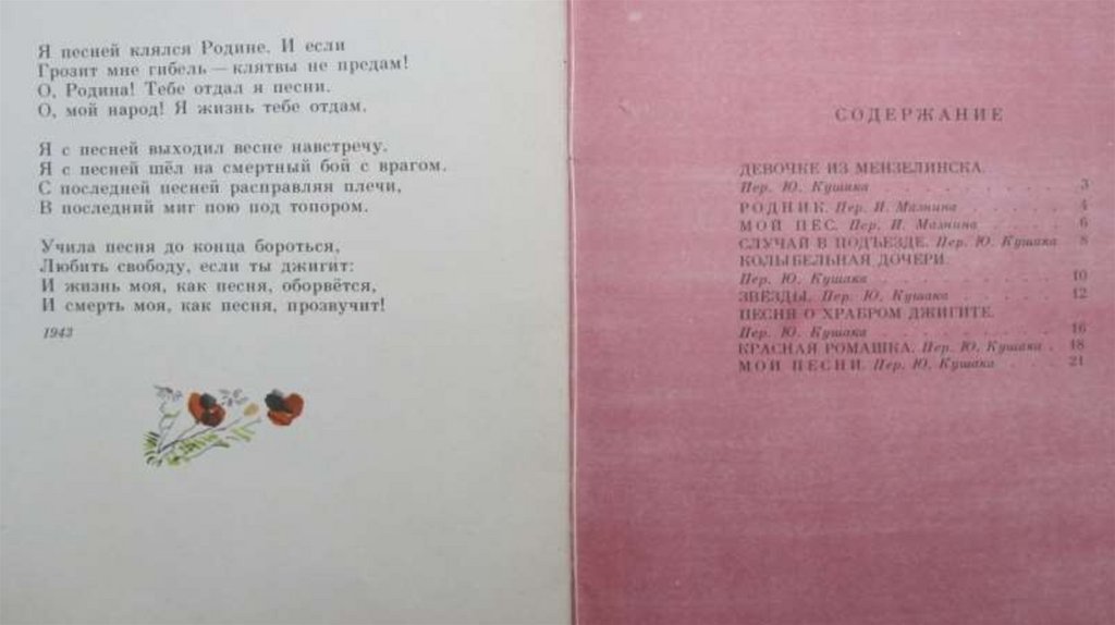 Иншар Алькарамовой и, уезжая на фронт, оставил ей в подарок стихотворение №Девочке из