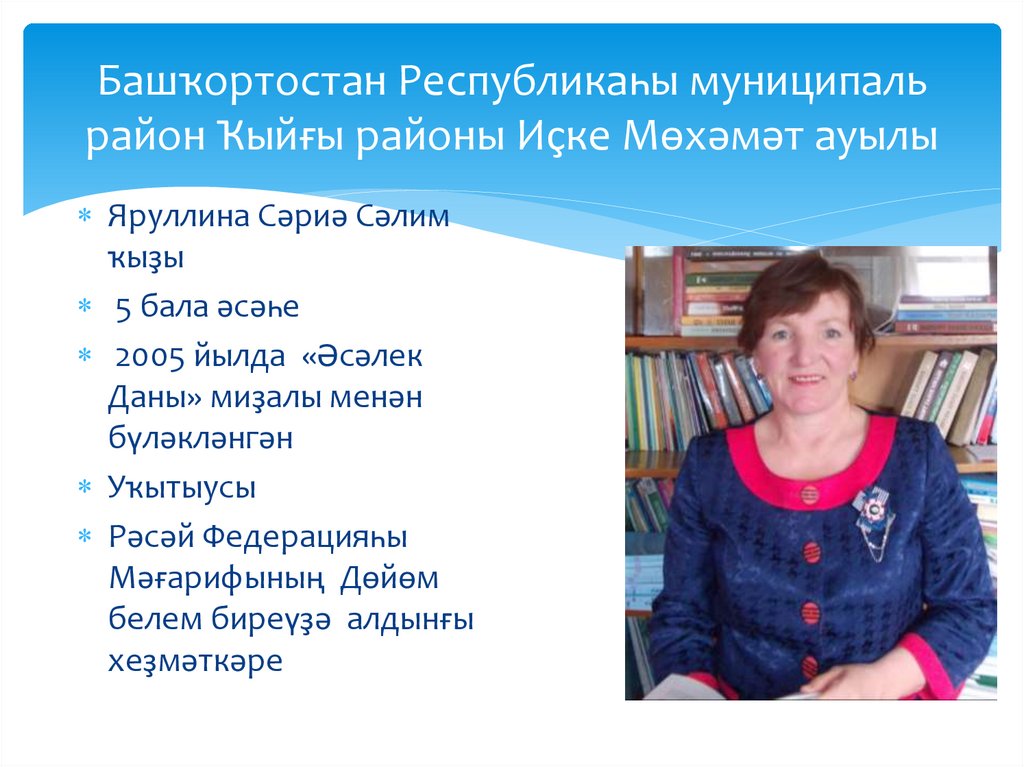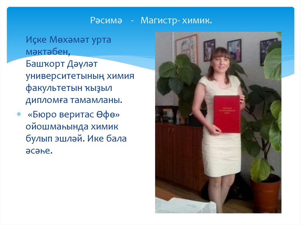 Рәсимә - Магистр- химик.Иҫке Мөхәмәт урта