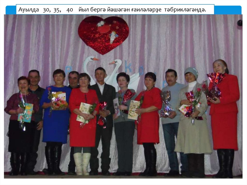 Ауылда 30, 35, 40 йыл бергә йәшәгән ғаиләләрҙе тәбрикләгәндә.4.