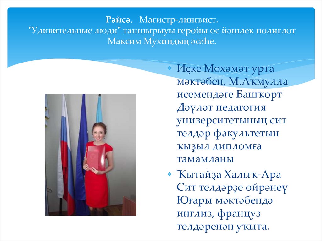 Рәйсә. Магистр-лингвист."Удивительные люди" тапшырыуы геройы өс йәшлек полиглот