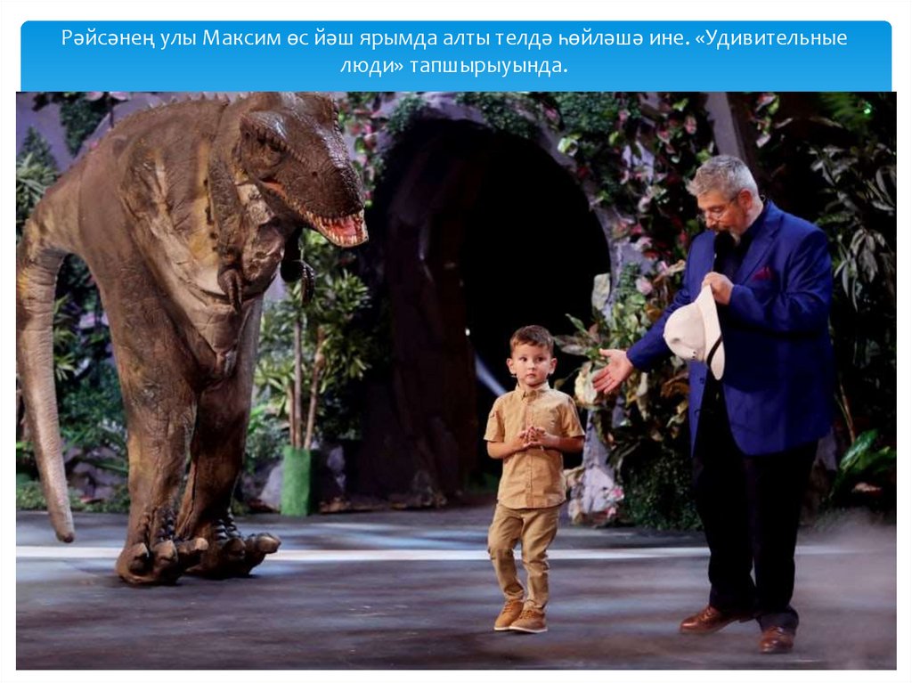 Рәйсәнең улы Максим өс йәш ярымда алты телдә һөйләшә ине. «Удивительныелюди» тапшырыуында.