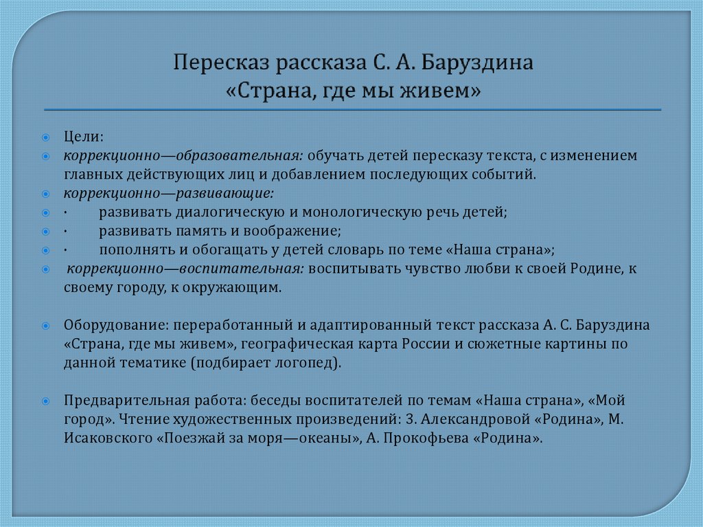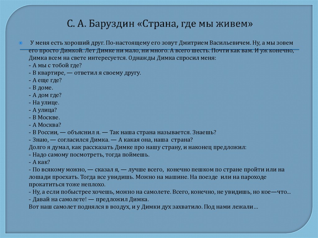 Оборудование: переработанный и адаптированный текст рассказа А. С. Баруздина