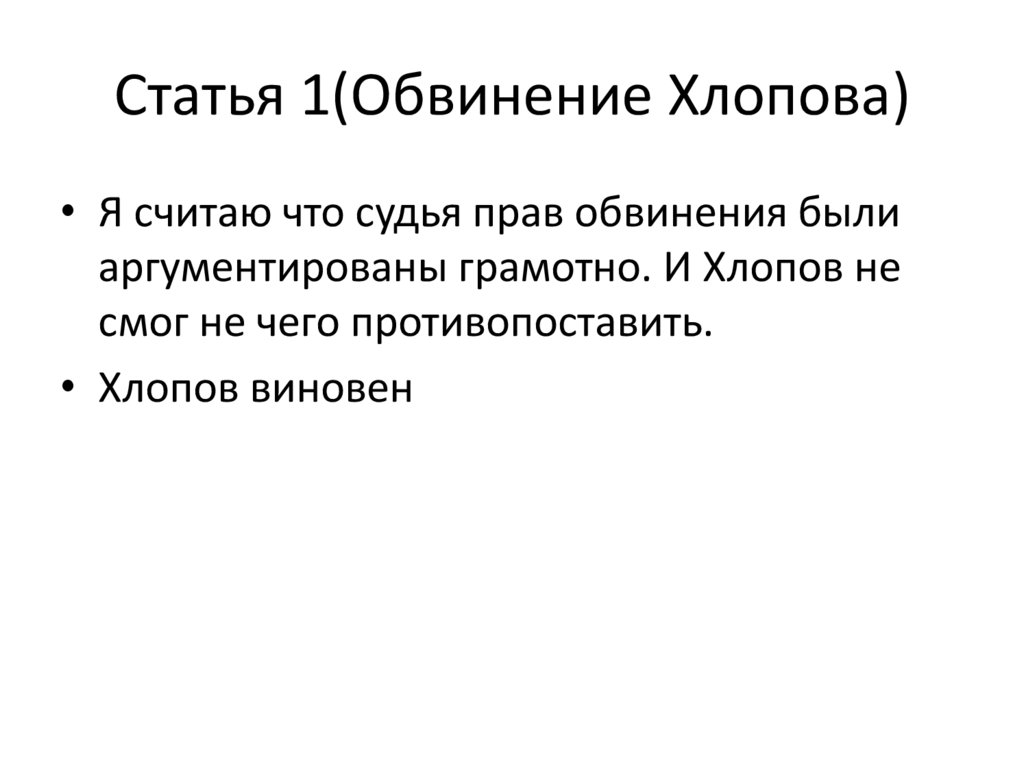 Статья 1(Обвинение Хлопова)• Я считаю что судья прав обвинения были