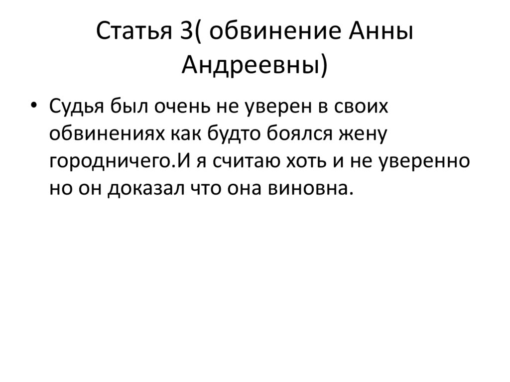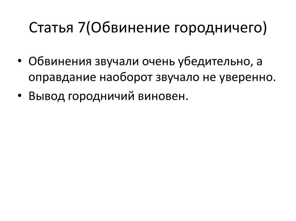 Статья 7(Обвинение городничего)• Обвинения звучали очень убедительно, а